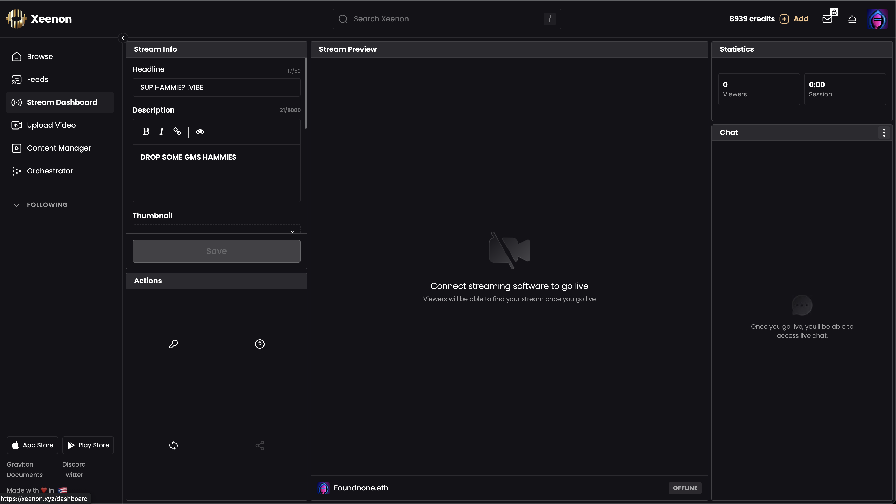 * You will earn credits on Xeenon for every minute that a viewer is watching, depending on the credits per minute rate that you have set for a stream